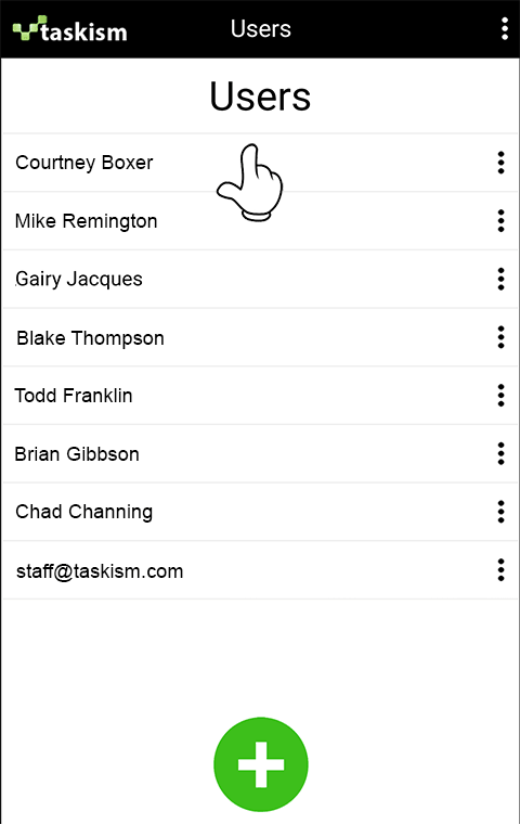 From the List users page, click the "+" button at the bottom Add a new user by entering that users email address. User will then "Sign Up" at taskism.com using the email address, and entering a first name, last name and password.
